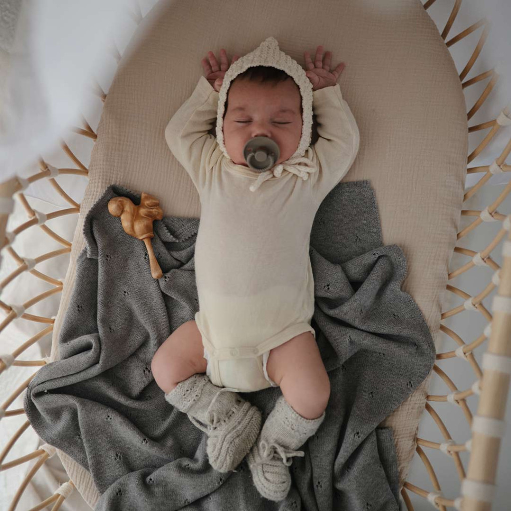A FRIGG Rope cumik a skandináv dizájn finom eleganciáját és a babák mindennapi kényelmét ötvözik. Dániában tervezett és gyártott prémium minőségű termék, amely a legmagasabb biztonsági és minőségi követelményeknek is megfelel. A kötélmintás perem a természetességet és a kézműves hangulatot idézi, miközben diszkréten stílusos kiegészítője lesz a baba mindennapjainak.