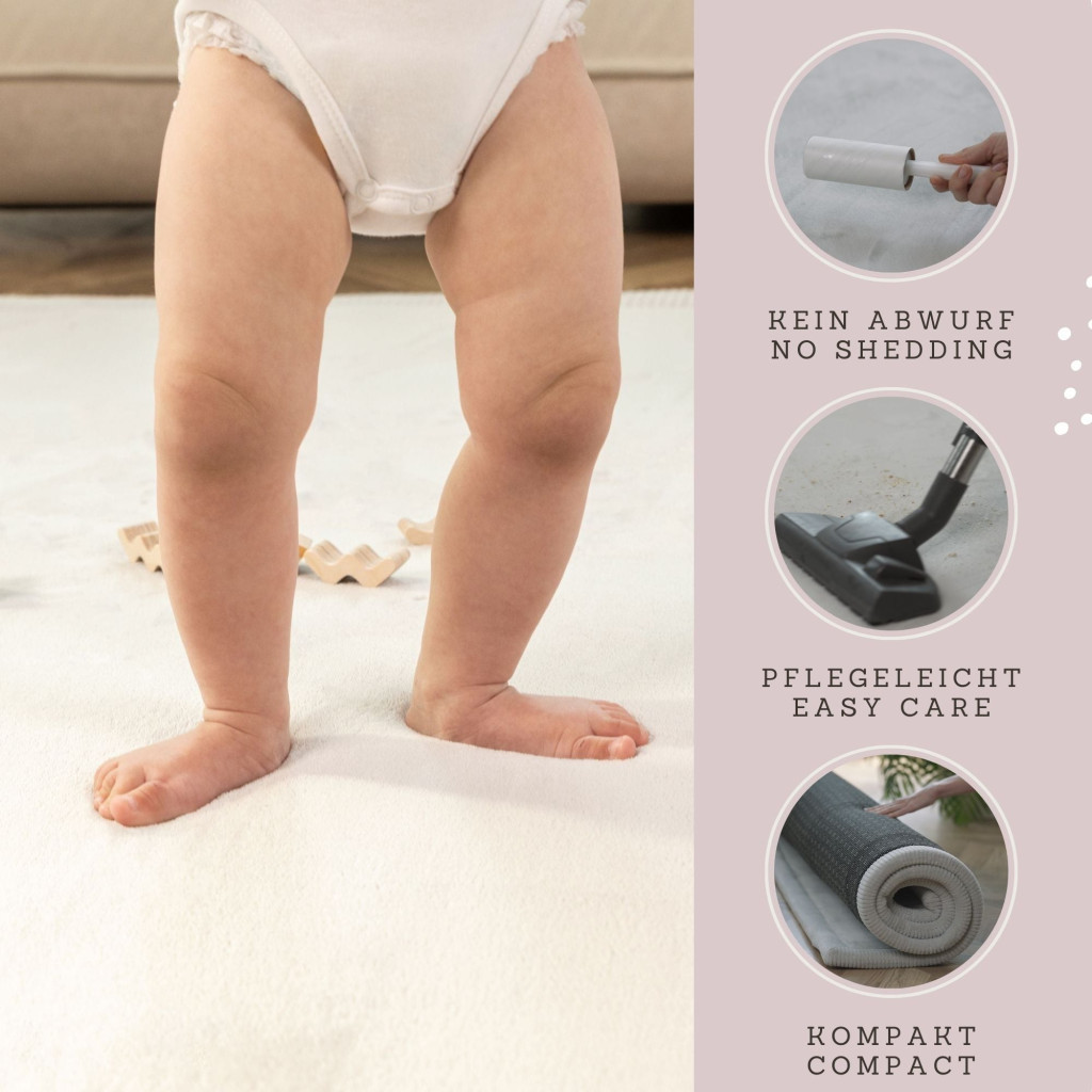 Mert egy darabból áll, nem csúszik szét játék közben, nem gyűlik össze a kosz az illesztéseknél, és megjelenésében is sokkal közelebb áll egy prémium lakástextilhez – miközben megmarad a játszószőnyegekre jellemző puhaság és biztonság.