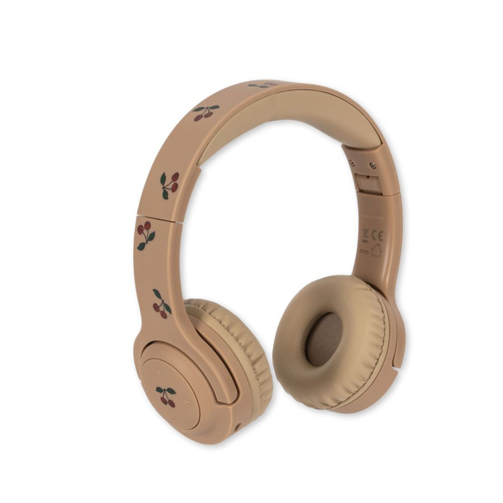 A Konges Sløjd vezeték nélküli gyerek fejhallgató egy stílusos és kényelmes kiegészítő, amelyet a márka ikonikus citrom és cseresznye mintái díszítenek.