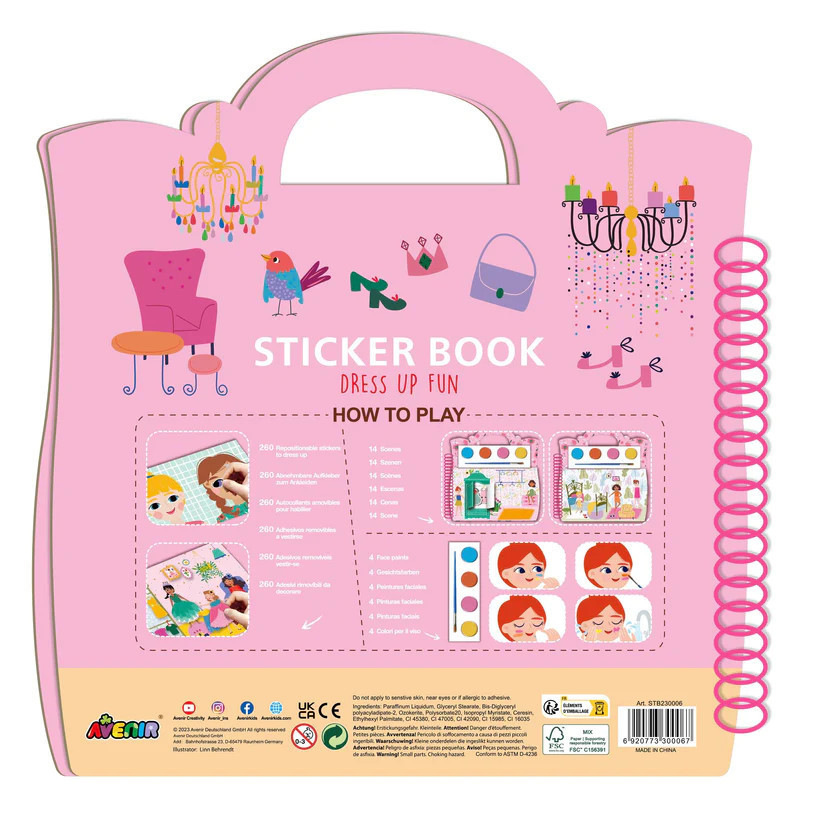 260 db újrahasználható matricát és 4 arcfestéket tartalmazó matricázó könyv az Avenir-től!