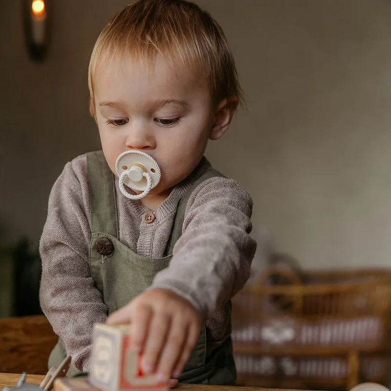 Válaszd a FRIGG Rope Szilikon Blush/Cream szettet, ha higiénikus, biztonságos és stílusos cumit keresel, amely a dán minőség és a tudatos gondoskodás tökéletes találkozása