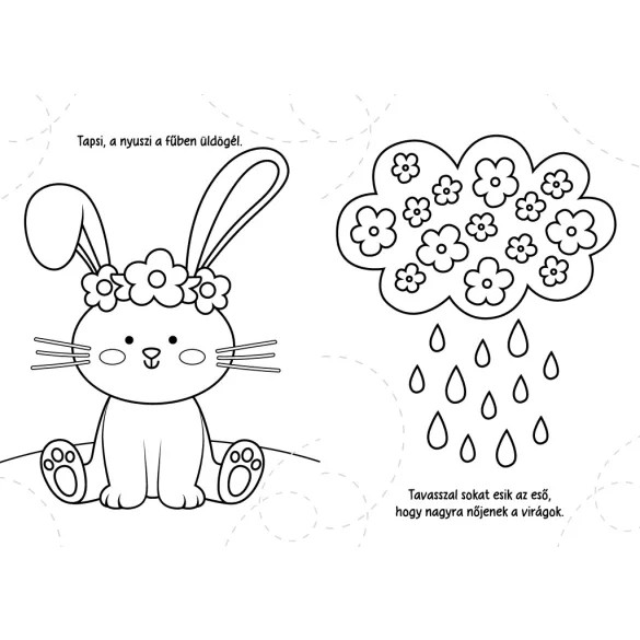 Illatos virágok, mosolygós nyuszik és színes húsvéti motívumok várják, hogy életre keljenek. Ez a kifestő kellemes kikapcsolódást nyújt az ünnepi készülődéshez, miközben segíti a kézügyesség fejlődését. Ragadj színes ceruzát, és varázsold tavaszivá az oldalakat!