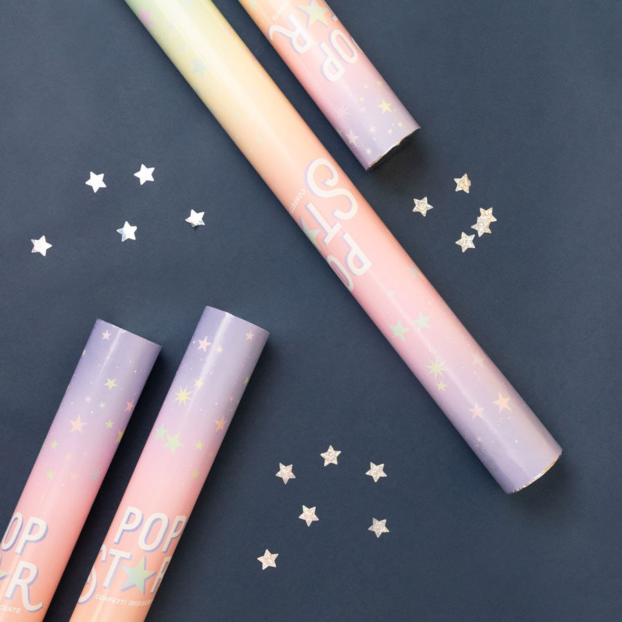 Ragyogtasd fel az ünneplést ezzel a 40 cm-es irizáló csillag konfettiágyúval! Ez a látványos party kellék csillogó, fényben játszó csillagokat repít a levegőbe, amelyek pillanatok alatt varázslatos hangulatot teremtenek.