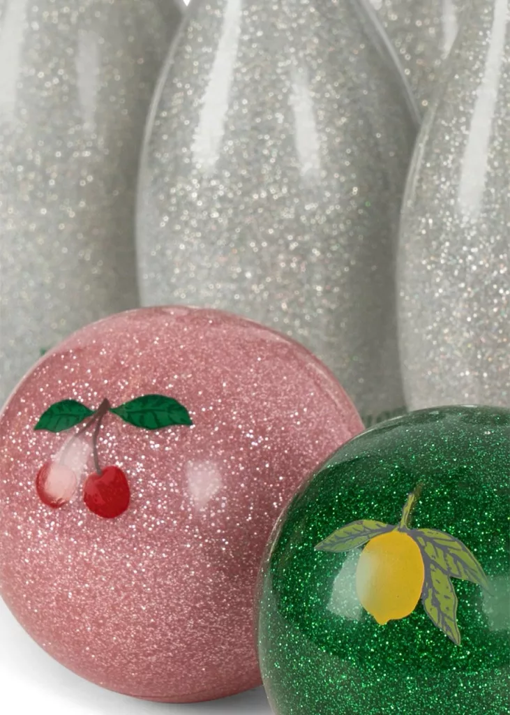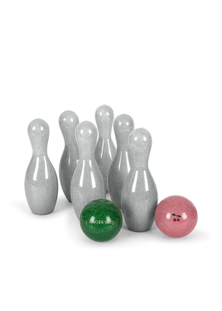 A Konges Sløjd csillámos bowling játék izgalmas és látványos változata ennek a klasszikus családi játéknak. A készlet 6 darab csillogó, glitterrel töltött bábut és 2 könnyű bowling labdát tartalmaz, amelyek mérete és súlya kifejezetten a kisebb kezekhez lett igazítva. A játék közben a csillámok mozgása még szórakoztatóbbá teszi a gurítást, így a gyerekek örömmel próbálhatják ledönteni a bábukat újra és újra.