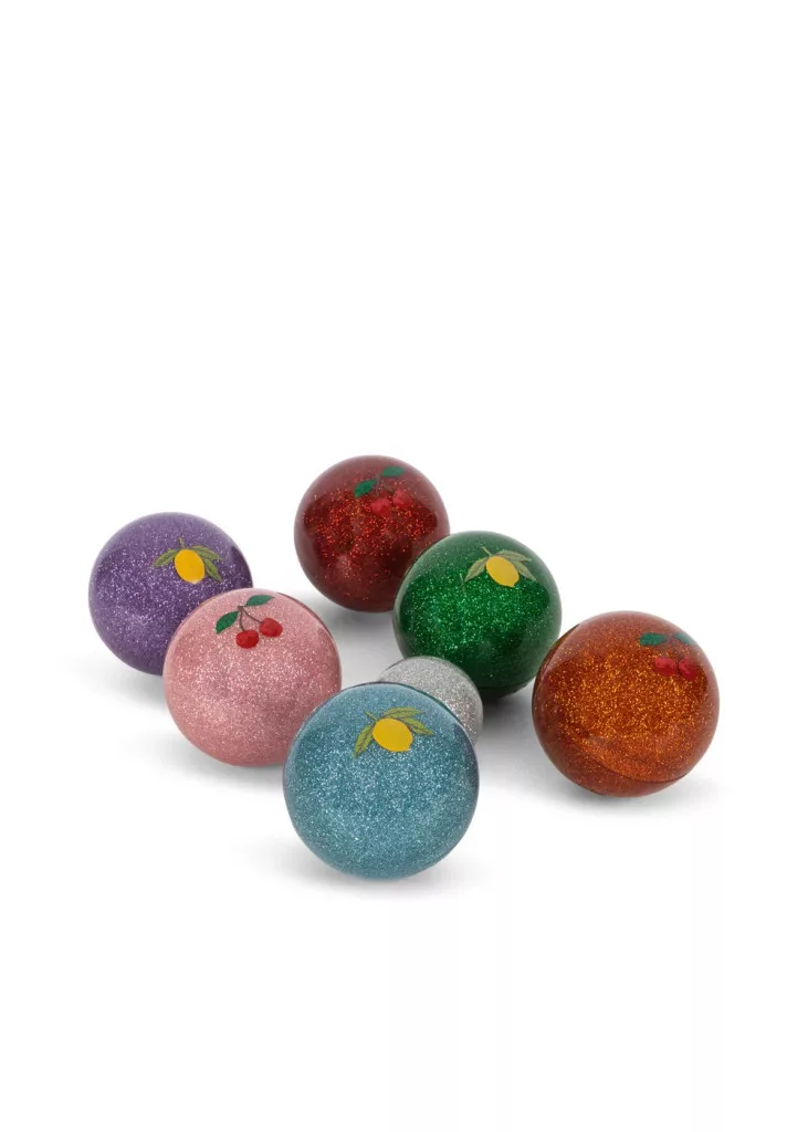 Ismertesd meg a családdal a klasszikus francia pétanque játékot a Konges Sløjd csillámos készletével! A könnyű, gyermekbarát kialakítású golyók biztonságosak és könnyen megfoghatók a kisebb kezek számára is. A vidám, csillogó megjelenés még élvezetesebbé teszi a játékot, miközben a gyerekek játékosan fejleszthetik ügyességüket és koncentrációjukat.