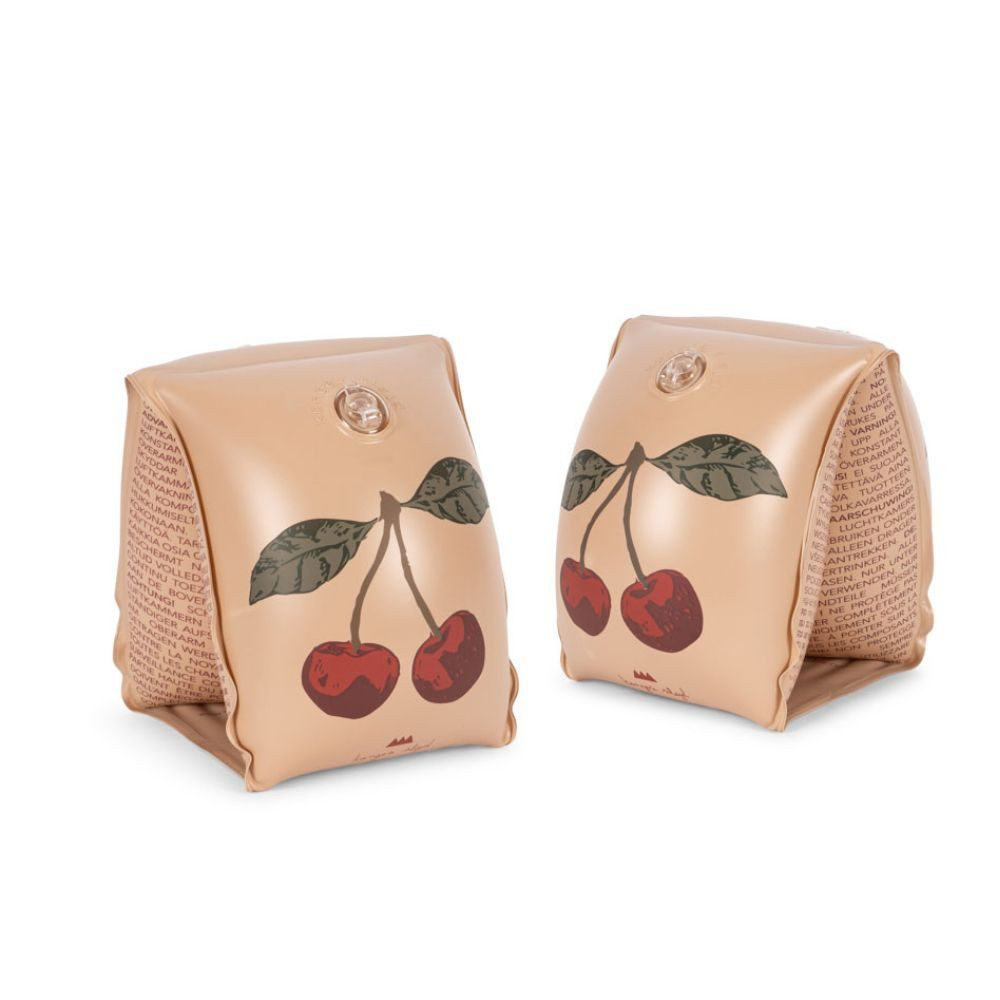 A Konges Sløjd cseresznye mintás karúszó tökéletes kiegészítő a nyári vízi kalandokhoz. Strapabíró, ftalátmentes, nem mérgező PVC-ből készült, amely biztonságos és kényelmes viseletet biztosít a gyerekek számára.