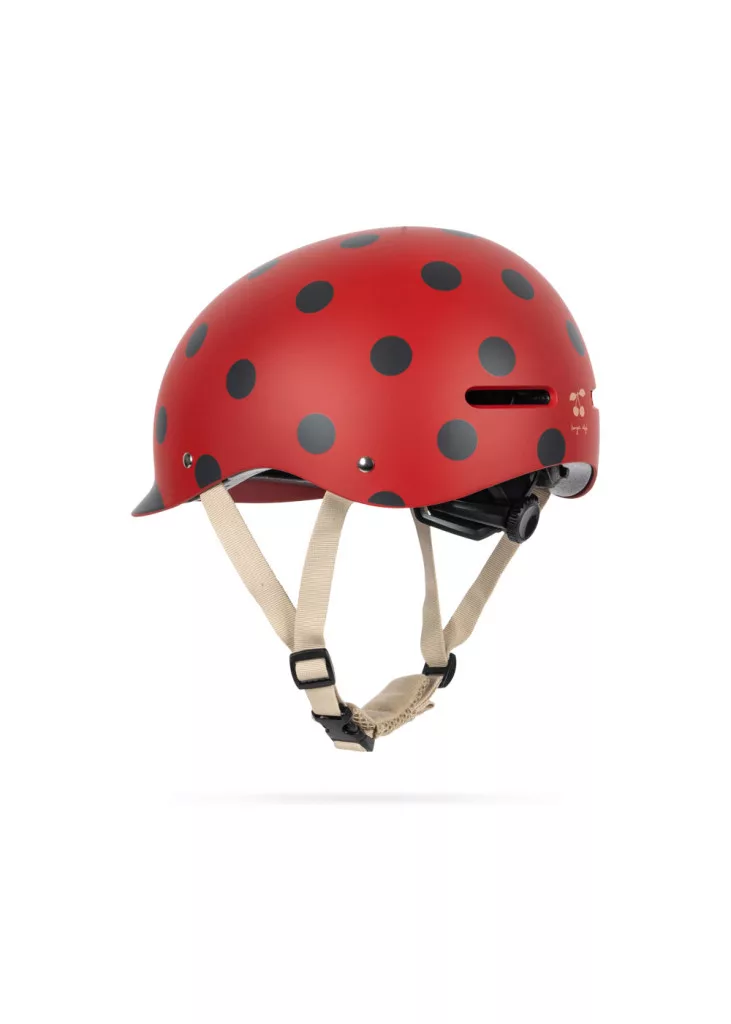 A Konges Sløjd Ladybug mintás gyerek sisak ideális választás kisbiciklizéshez, rollerhez, görkorcsolyához vagy skateboardhoz. A letisztult dizájn és a gondosan megtervezett részletek gondoskodnak arról, hogy gyermeked nemcsak biztonságban, hanem igazán stílusosan közlekedjen.