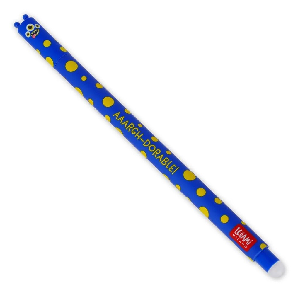 A Legami szörnyes radírozható zselés toll kék, hőérzékeny tintával ír, amely a toll végén található golyó segítségével nyomtalanul eltüntethető. Így nincs több áthúzás vagy radírmorzsa, csak tiszta, rendezett jegyzetek.