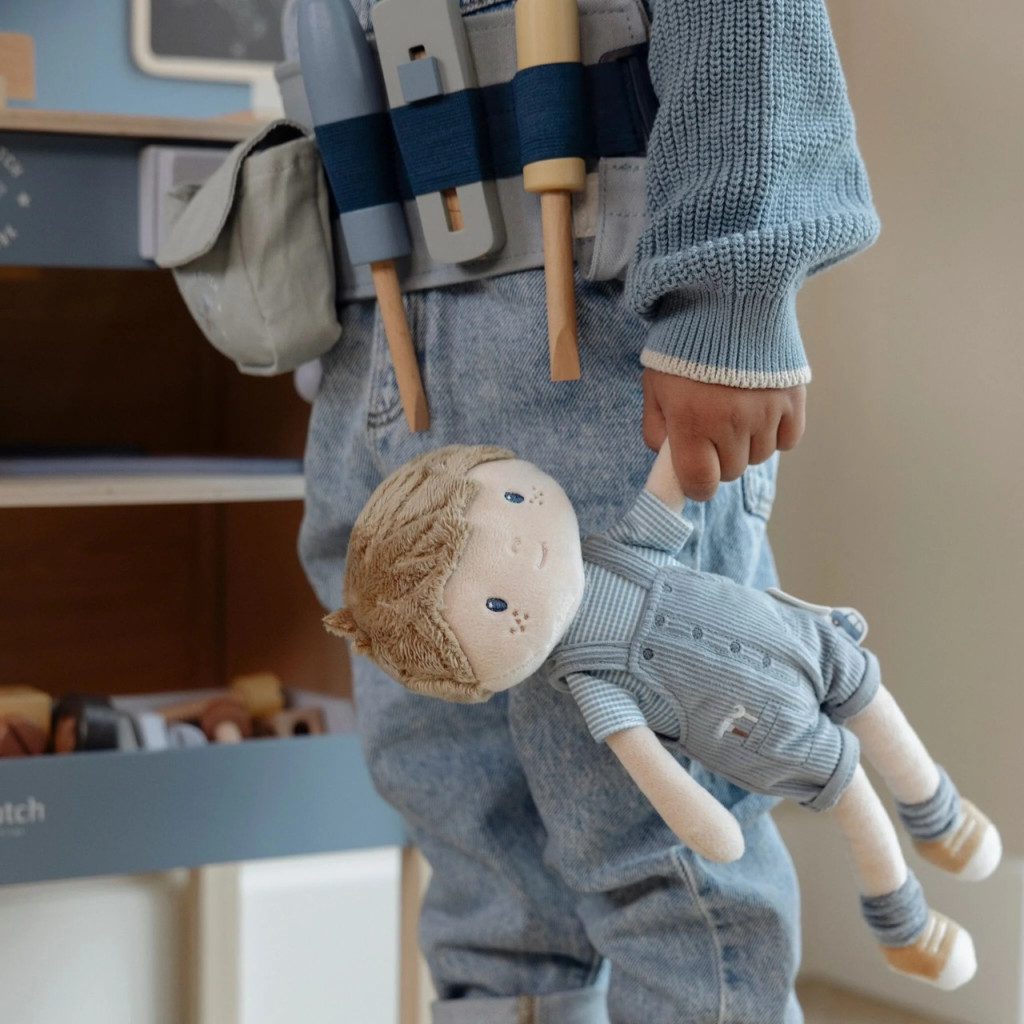 Ismerd meg Jimet, a 35 cm magas, kedves ölelni való babát, aki mindig készen áll egy nagy ölelésre vagy egy új kalandra. Puha teste, vagány kantáros nadrágja és vidám csíkos pulóvere igazán szerethető megjelenést ad neki.