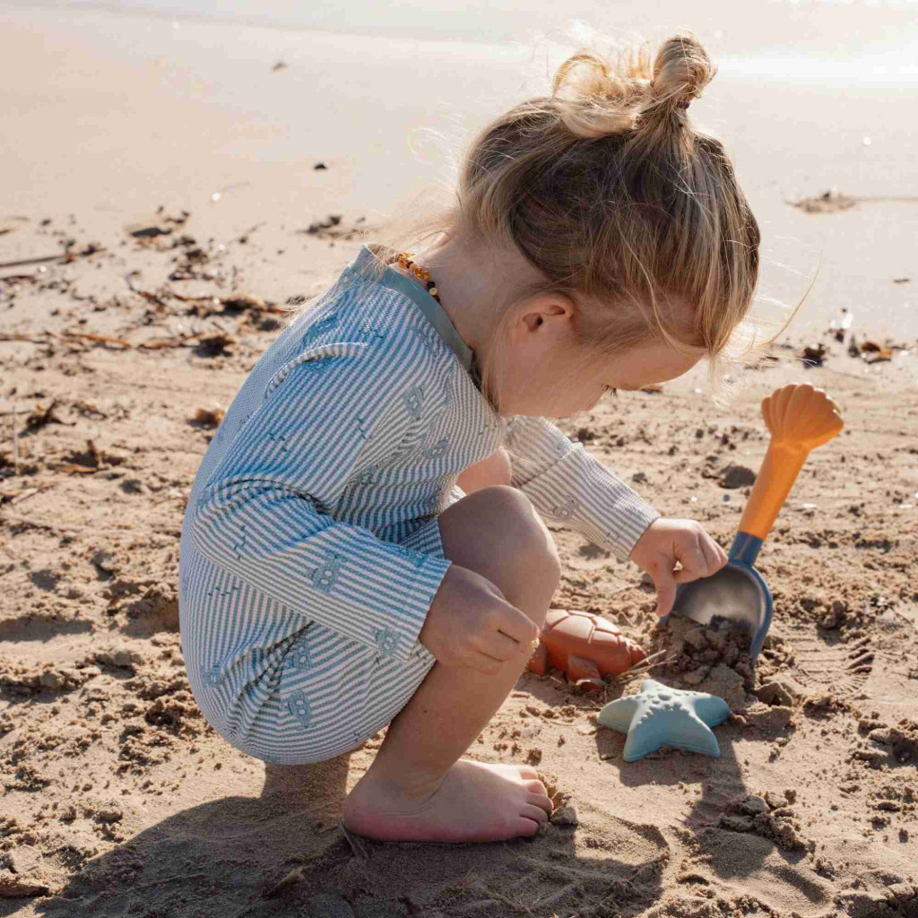 A Little Dutch Ocean World homokozó szett tökéletes választás a kreatív homokvárak és formák elkészítéséhez.