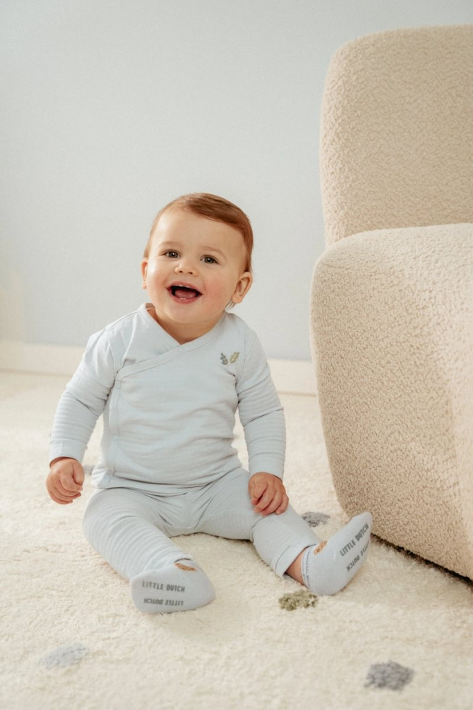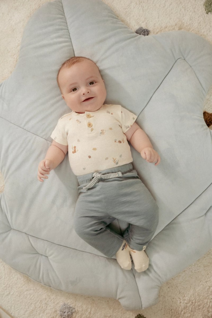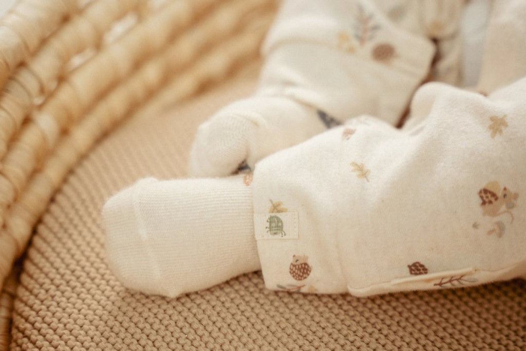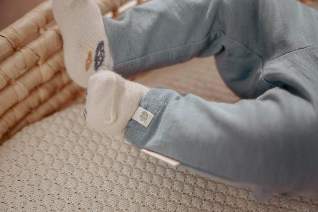 A puha, organikus pamut tartalmú anyag kellemes viseletet biztosít, miközben jól illeszkedik a baba lábára, a rugalmas szegélyeknek köszönhetően pedig nem csúszik le.