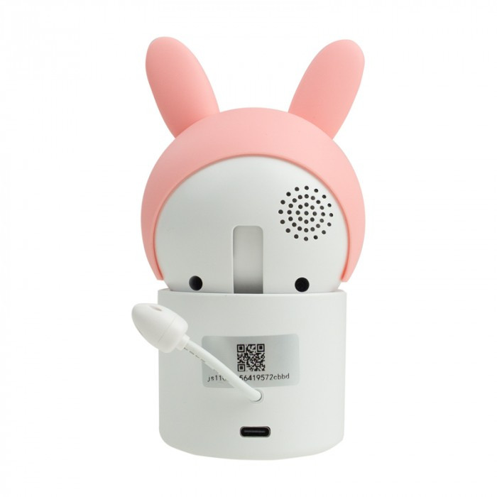 A kamera USB 5V 1A tápegységgel működik, így könnyedén csatlakoztatható egy szokásos telefontöltőhöz. A strapabíró ABS ház és a rózsaszín nyuszi dizájn barátságos megjelenést biztosít, amely illik bármely gyerekszobába.