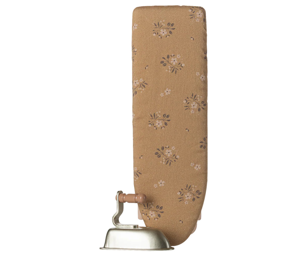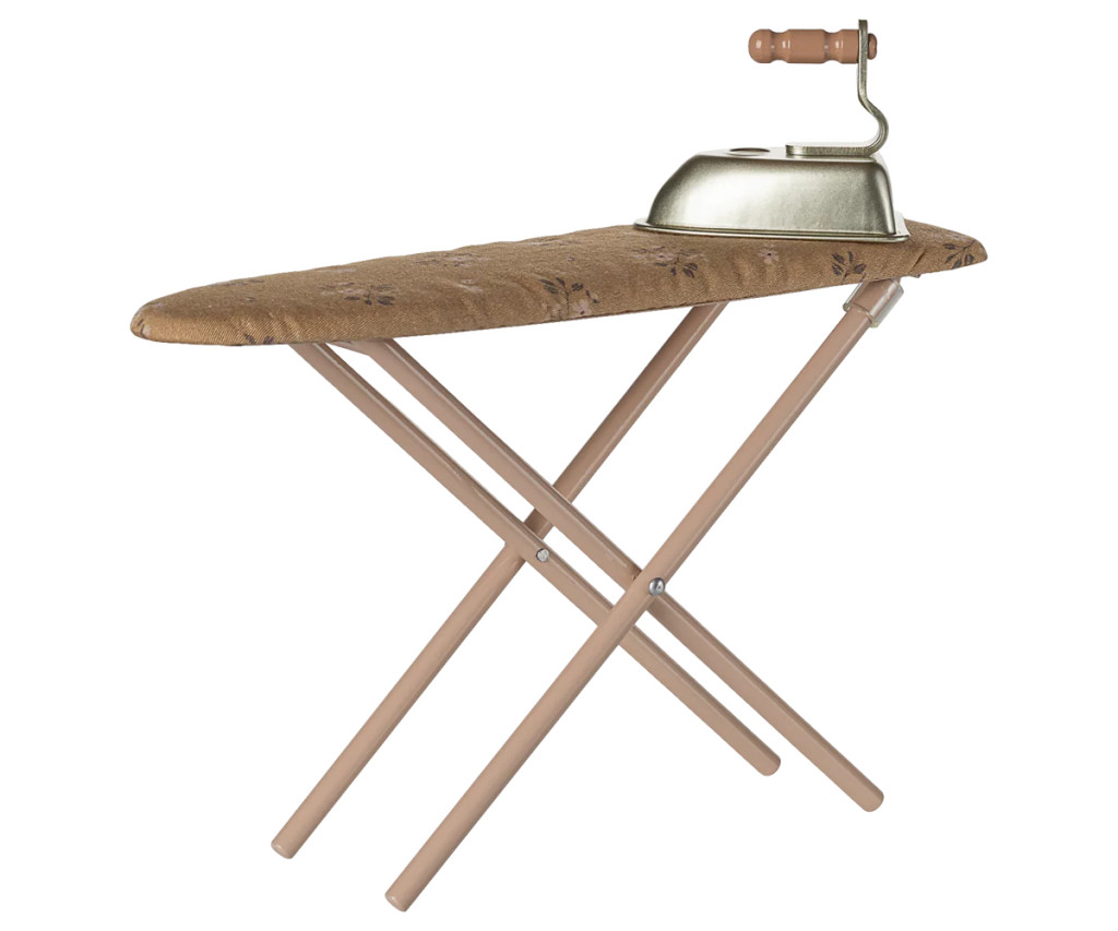 Egy jól felszerelt mosókonyhából nem hiányozhat a vasaló és a vasalódeszka sem! Ez a szett még élethűbbé varázsolja a gyerekek játékát. A vasalódeszka fémből készült, és egyedi Maileg textillel van bevonva.