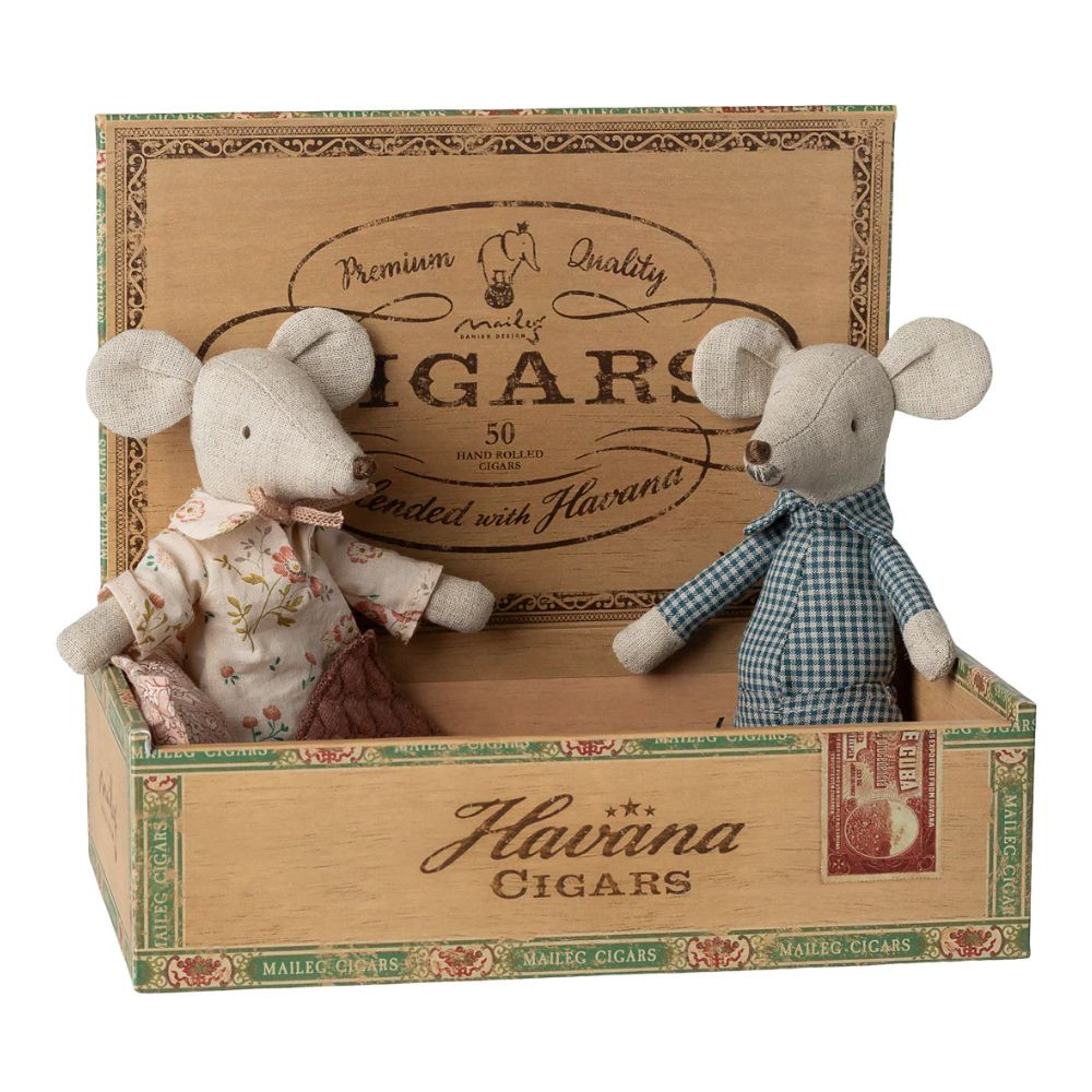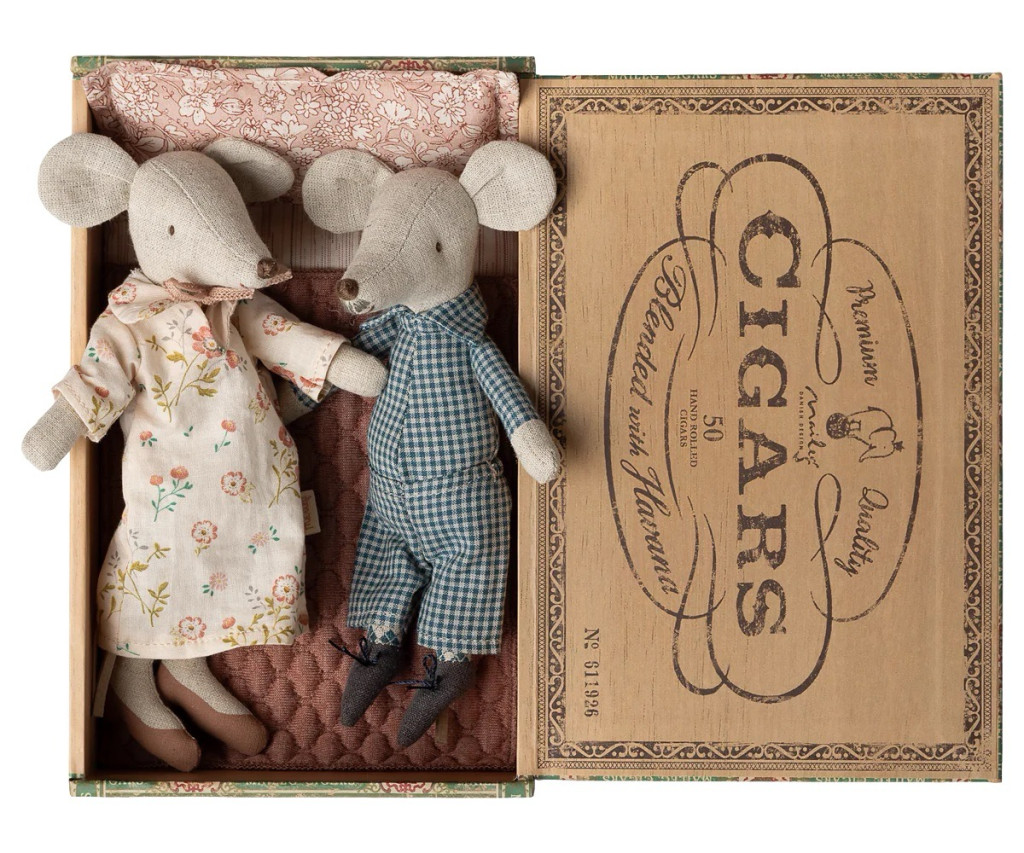 Igazi klasszikus Maileg darab: a nagymama és nagypapa egér most hálóruhában és csinos cipőben érkezik, készen a mesés esti történetekre és a meghitt családi pillanatokra. A díszes szivardoboz tökéletes fekhely számukra, ahol kényelmesen pihenhetnek egy hosszú nap után. A részletgazdag kidolgozás és a minőségi anyaghasználat igazán különlegessé teszi ezt a szettet a Maileg világában. Méret: Magasság: 17 cm Anyag: len / pamut / karton Töltet: újrahasznosított poliészter / PE pellet Ajánlott életkor: 3 éves kortól Különleges, örökzöld ajándék, amely generációkon átívelő játékélményt kínál a Maileg rajongóknak. Miért népszerűek a Maileg játékok? A Maileg játékok a részletgazdag kidolgozásuk és egyedi, bájos stílusuk miatt rendkívül népszerűek. Minden Maileg figura és kiegészítő gondosan megtervezett, hogy ösztönözze a kreatív szerepjátékot, miközben varázslatos világot nyit meg a gyerekek előtt. Emellett a kiváló minőségű anyagok és a fenntartható gyártás is hozzájárulnak a Maileg termékek tartósságához és népszerűségéhez, így nemcsak a gyerekek, hanem a szülők körében is kedvelt választás.
