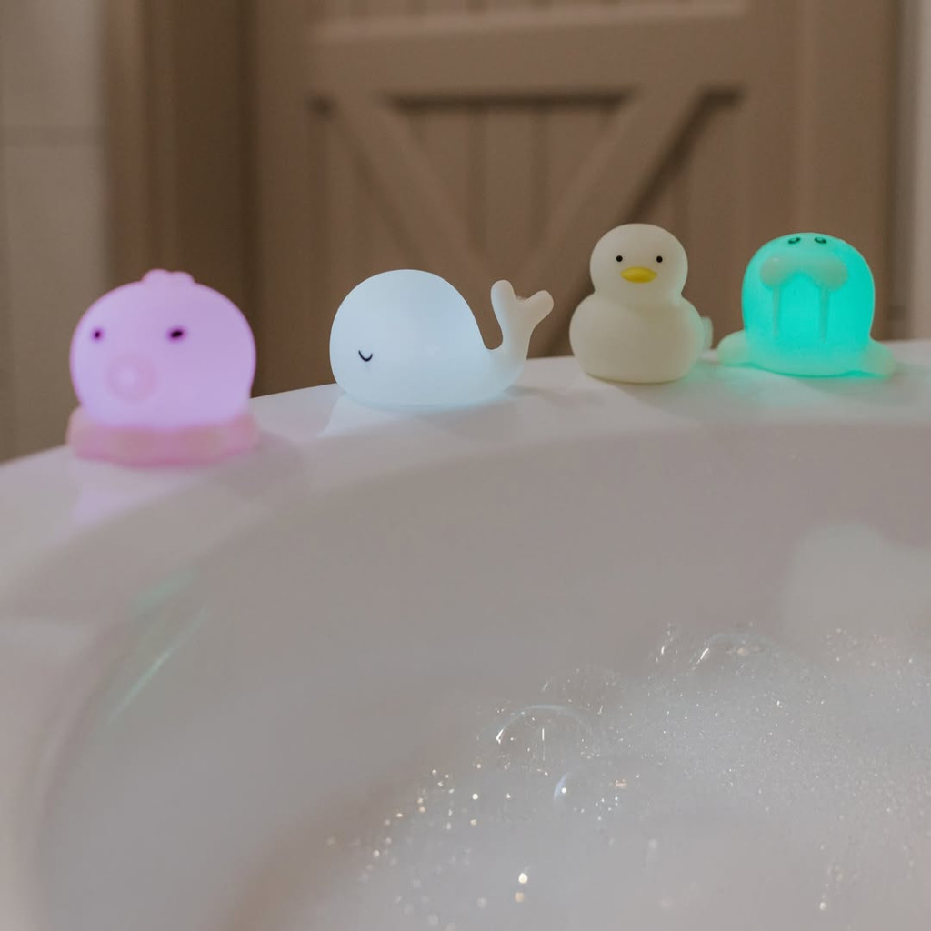 A Mary's Világítós Tengeri Állatok szett egyszerre játék és hangulatos világítás – tedd varázslatossá az esti fürdést vagy a lefekvés előtti perceket ezekkel a kedves, színes fényt árasztó figurákkal!