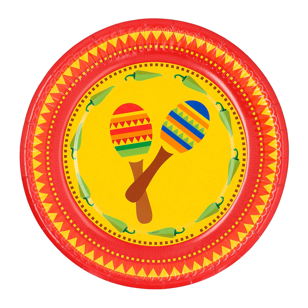 Színes, mexikói mintás papírtányér szett, amely tökéletes kiegészítője tematikus buliknak, születésnapi partiknak vagy nyári összejöveteleknek. Vidám megjelenésével feldobja az ünnepi asztalt, miközben praktikus megoldást kínál a sütemények, falatok és főételek tálalásához.