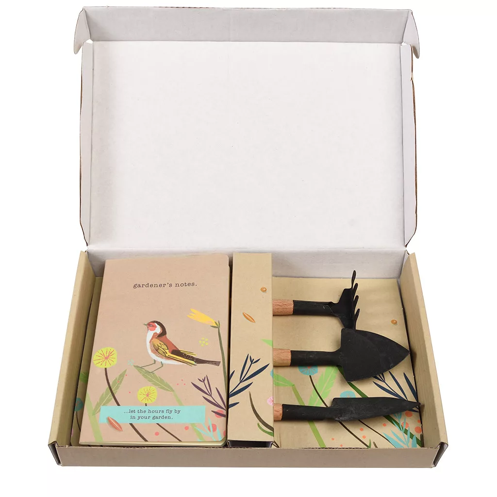 A szett része egy praktikus jegyzetfüzet is, amely ideális szezonális megjegyzések, ültetési tervek vagy gondozási jegyzetek felírására.