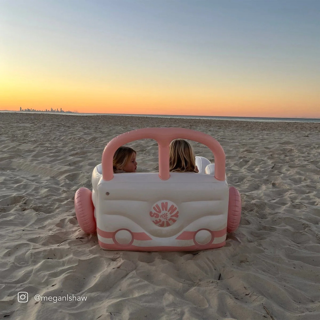 Indulhat a pizsamaparti! Ez a vidám, kisbusz formájú felfújható gyerekágy nemcsak kényelmes alvóhely, hanem egy igazán különleges élmény is a gyerekek számára. Tökéletes választás alváshoz, vendégséghez vagy akár otthoni kuckózáshoz.