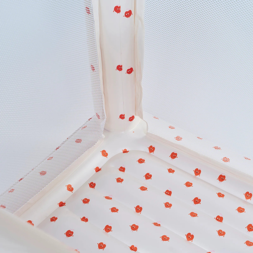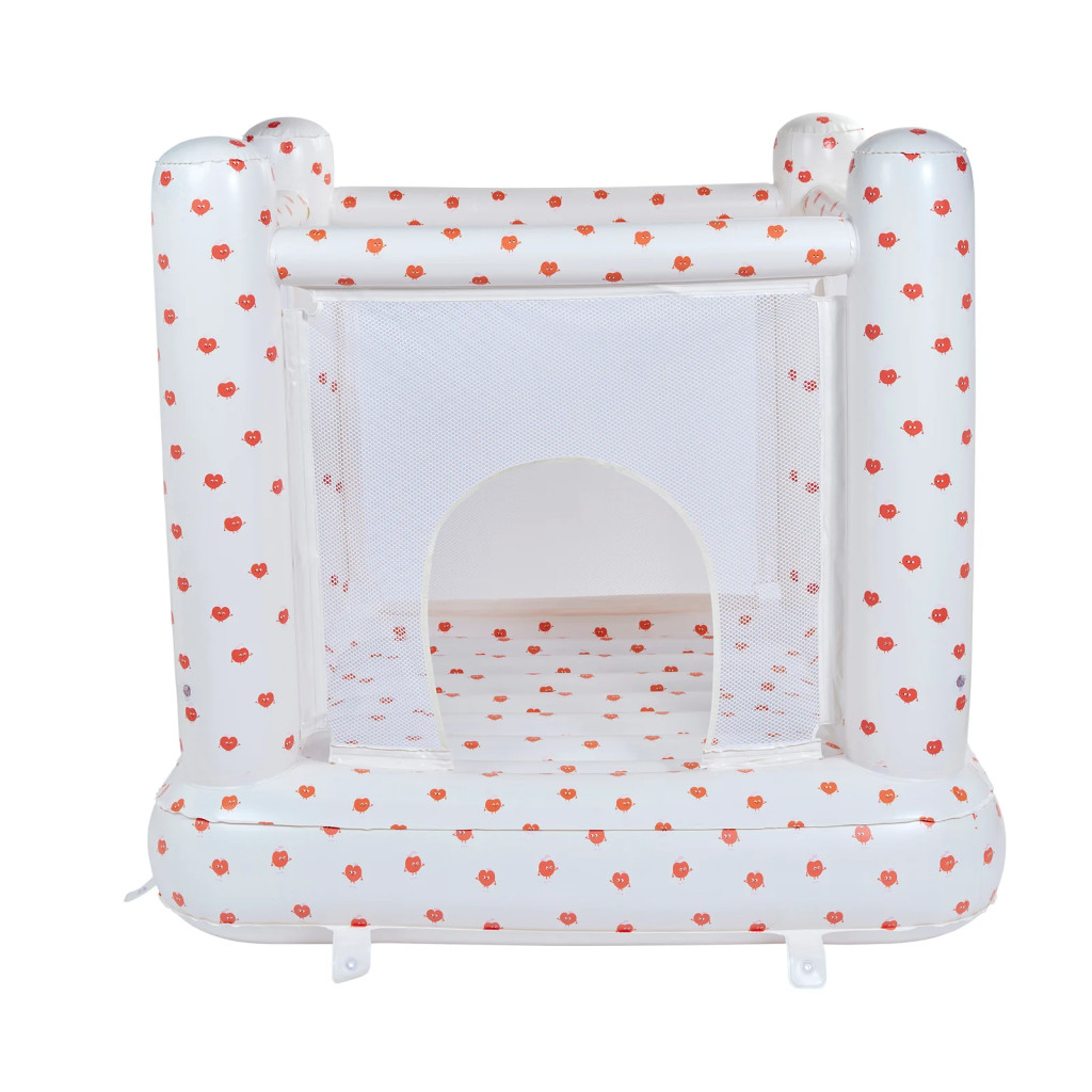 Ugrásra fel! Ez a vidám, barack mintájú felfújható ugrálóvár igazi kedvenc lesz minden kisgyerek számára. Tökéletes választás, ha szeretnéd levezetni a felesleges energiát játékosan – akár a nappaliban, akár a kertben.