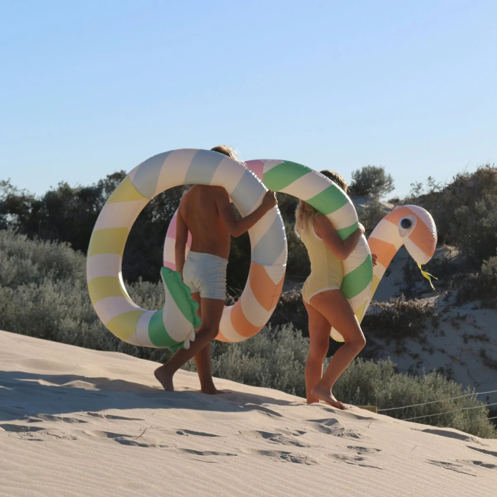 Dobd fel a strandolást vagy a medencés játékot ezzel a látványos, óriás felfújható kígyóval! A különleges formájú vízi játék nemcsak figyelemfelkeltő, hanem rengeteg aktív játékra is lehetőséget ad – átugrani, alábújni, körbeúszni… a nevetés garantált.