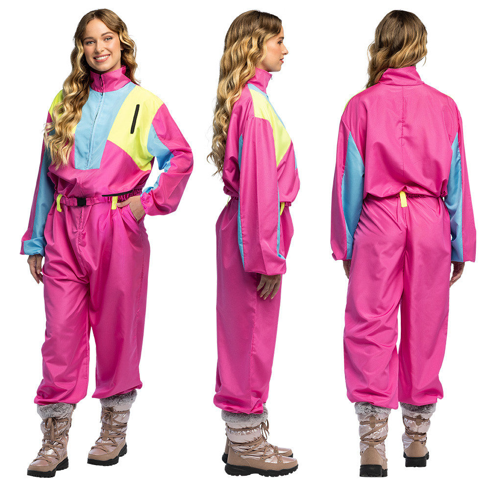 Utazz vissza a 80-as évekbe ezzel az ikonikus, élénk színű női síjelmezzel! A pink, kék és sárga színek merész kombinációja igazi neon hatást kelt, amely tökéletes választás farsangra, après-ski bulira vagy egy igazán bevállalós bad taste partyra.