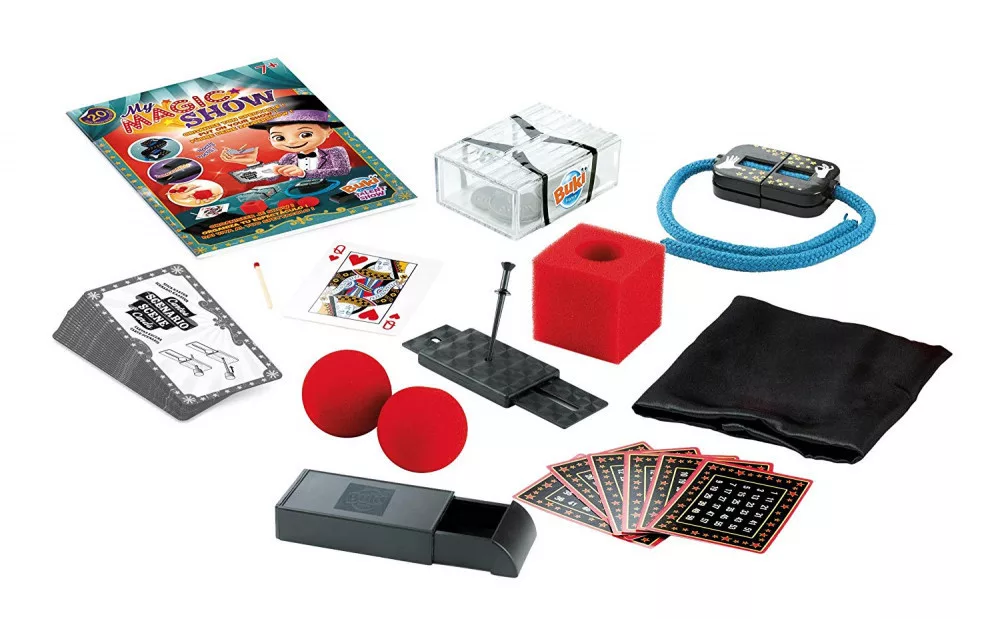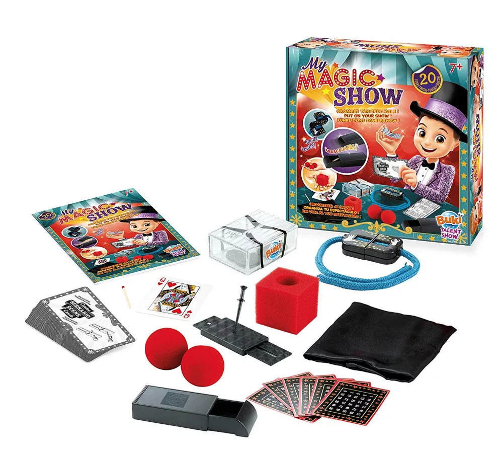 Mágikus show, bűvész készlet 20 trükkel a Buki-tól.Kápráztasd el a közönséged a dobozban található 20 különböző trükkel! Ezzel a fantasztikus játékkal lépésről-lépésre tanulhatod meg az egyszerűbb és bonyolultabb bűvészmutatványokat. A készletben minden eszköz megtalálható, mellyel igazi bűvésszé válhatsz.7 éves kortól ajánlott.
