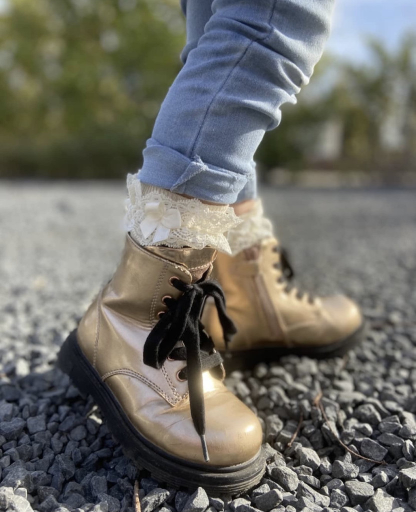 Divatos pamut zokni csipkével és bájos kis masnival díszítve kisgyerekek és babák részére.