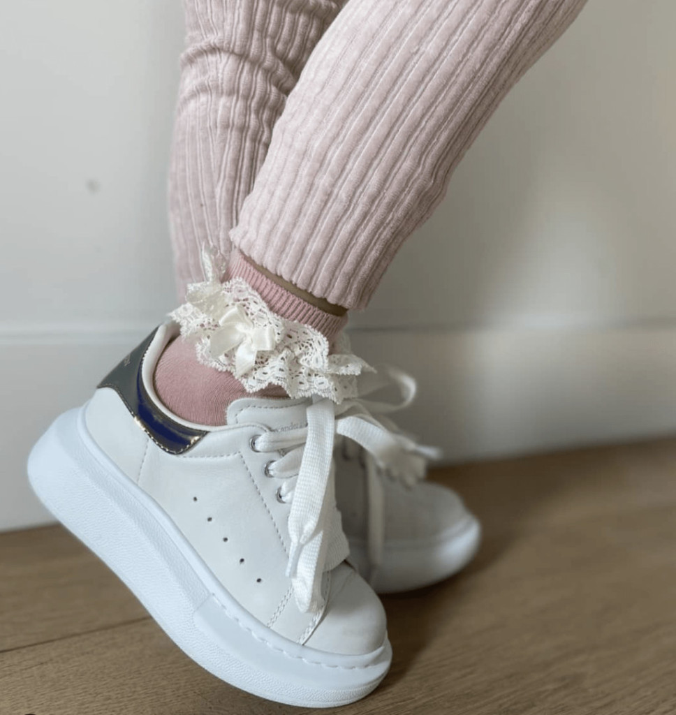 Divatos pamut zokni csipkével és bájos kis masnival díszítve kisgyerekek és babák részére.