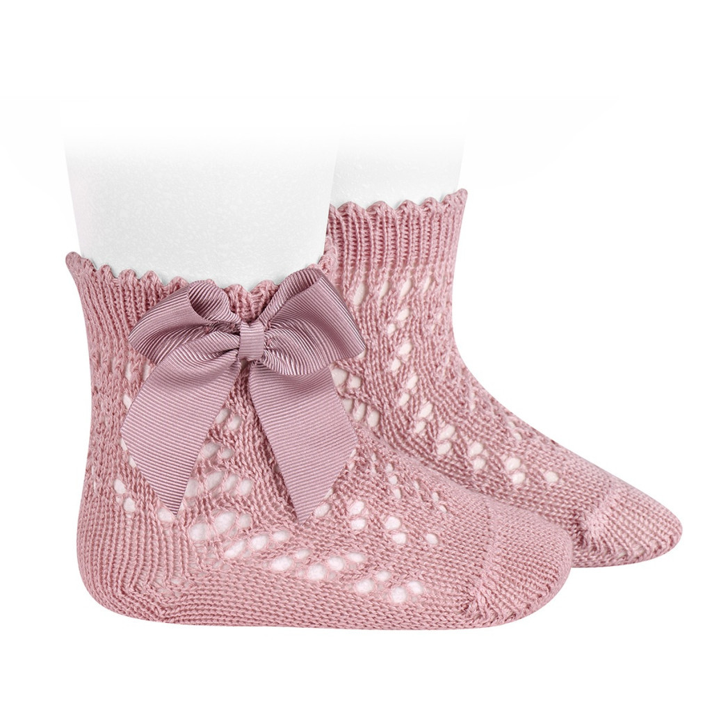 A tavaszi viselet elengedhetetlen kelléke ez a gyönyörű gyöngymintás pamut rövid zokni bájos masnival.