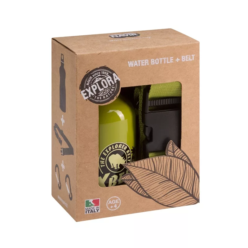A készlet tartalma: kulacs, állítható öv karabinerekkel.