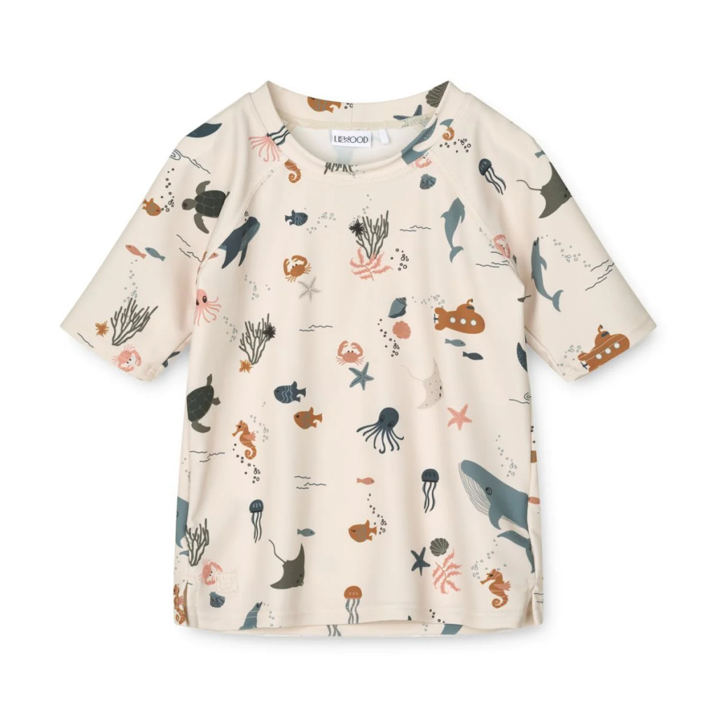 Tartsd gyerkőcöd biztonságban és stílusosan a napon az UPF 40+ UV-védő Noah rövidujjú úszó pólóval a Liewood-tól. A gyorsan száradó és légáteresztő anyaga kedvencévé teszi a strandon vagy a medencében, a játékos minta pedig extra egyéniséget ad.