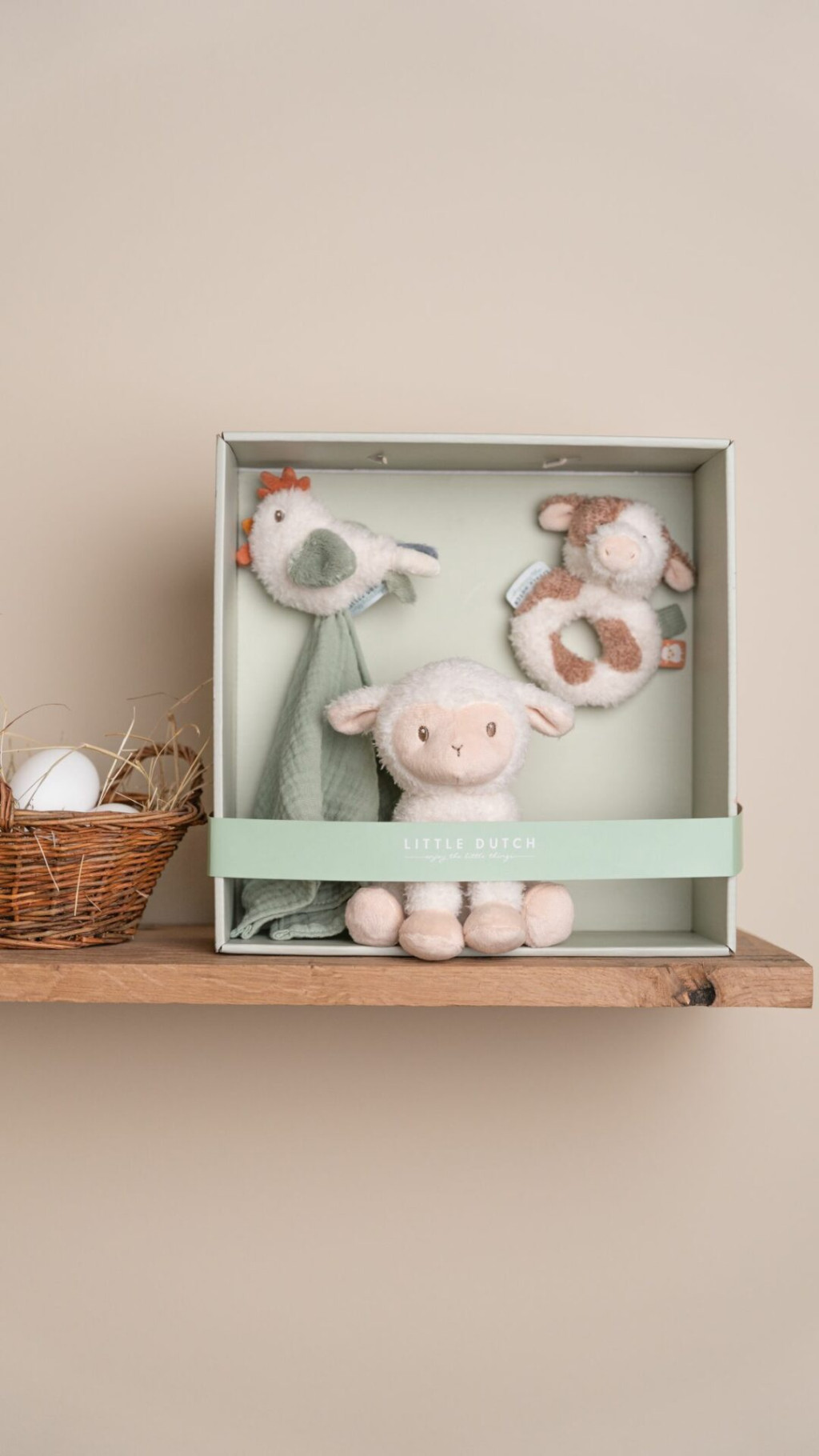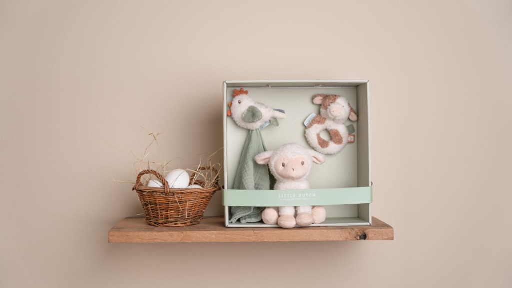 Ismerd meg a kis bárányt, aki kisbabád első barátja lehet! Tökéletes ajándék újszülött látogatás alkalmára vagy babaváró partyra. Ez a gyönyörű ajándékdoboz a Little Dutch népszerű Farm kollekciójának legpuhább, legédesebb tagjait rejti: egy szundikendő tyúkkal, egy puha plüss bárány és egy kedves bocis rágóka. A szundikendőhöz csodálatos érzés odabújni alváskor, a kis plüss tyúkot bárhol ölelheted és mindig veled lehet, a csörgő rágóka boci pedig nem csak vidám játszást ígér, de ügyesíti is a kicsi szem- és kézkoordinációját.