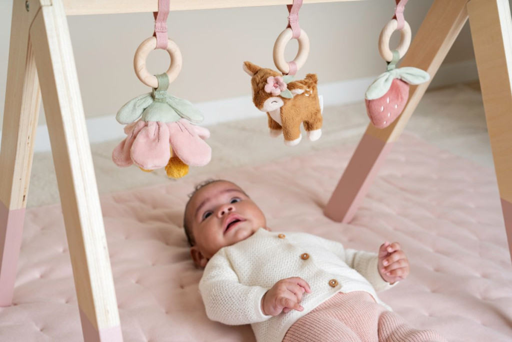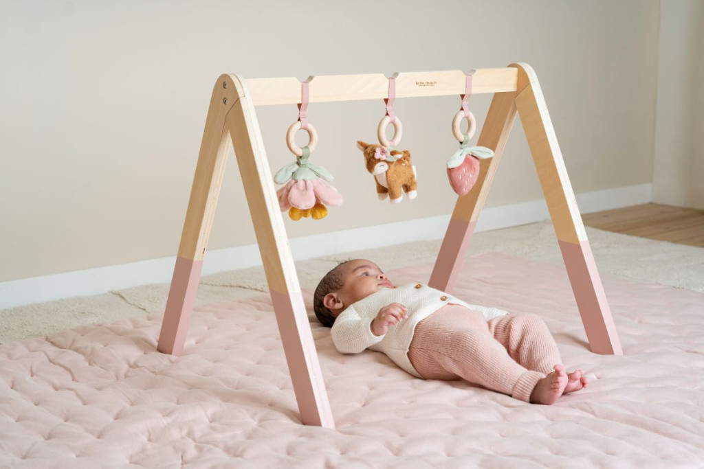 Little Dutch babatornáztató valódi tömör fából, vázzal, 3 plüss figurával.