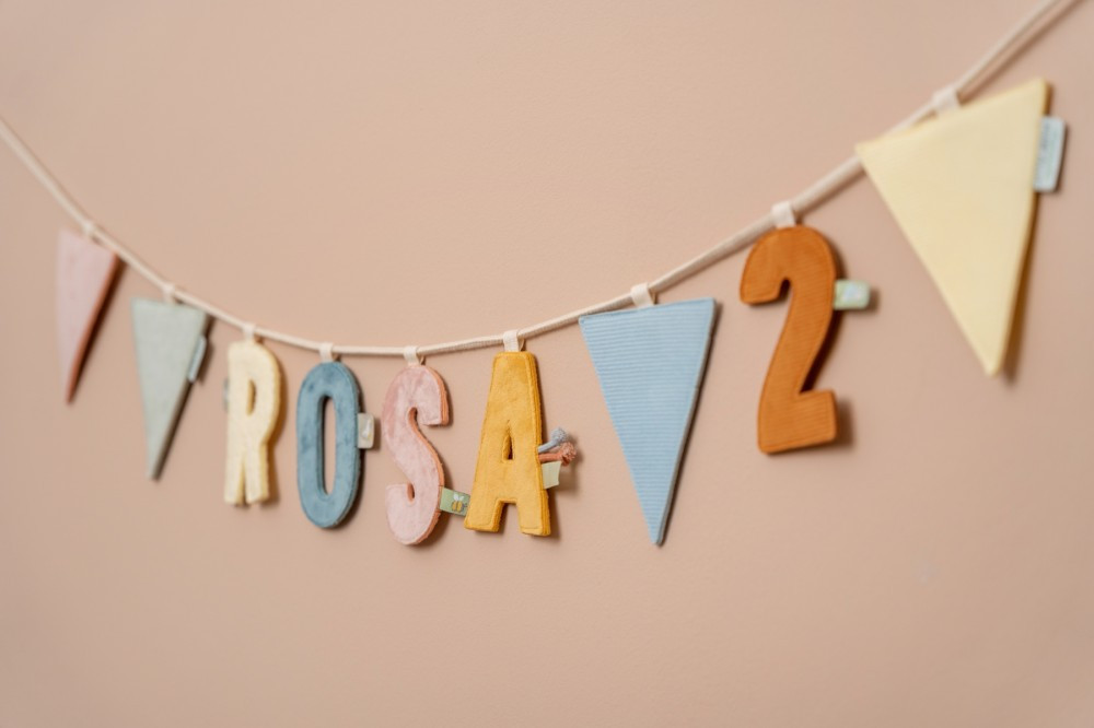 Dobd fel a gyerekszoba hangulatát a Little Dutch fűzhető textilből készült zászlóival, betűivel és számaival. Díszítsd fel egy kis madárral, hajóval, gúnárral, virággal vagy egy aranyos méhecskével.