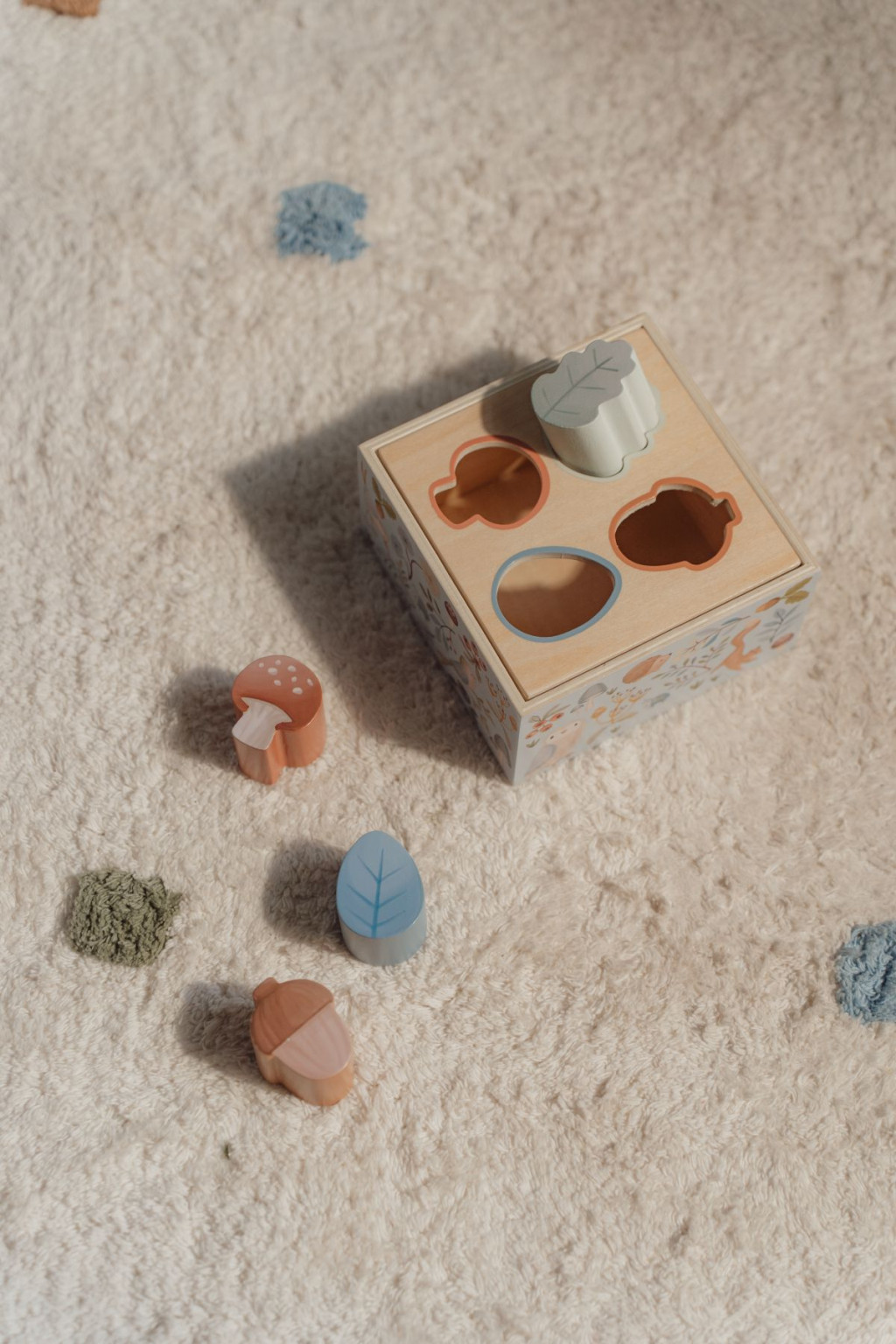 A klasszikus formabedobó játék modern változata gyönyörű színekkel, természetes fa anyagból, 4 formával. Miközben a kicsi keze ügyesedik, megtanulja a megfigyelés fontosságát, és jutalma a sikerélmény: a forma végül bepottyan a helyére!