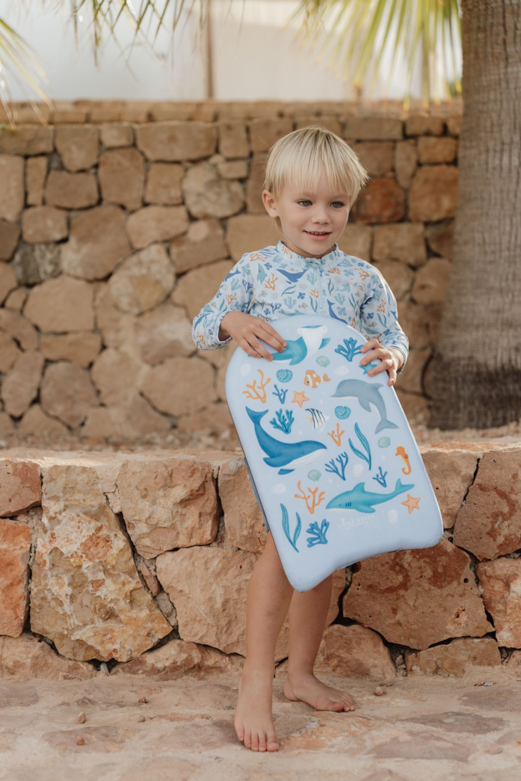 Akár a medencénél, akár a strandon, a deszka ideális méretet kínál a kis úszó számára, hogy átbújhasson a vízben, és önbizalmat szerezzen az önálló úszáshoz.