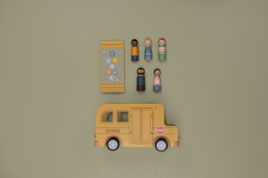 Körbe-körbe járnak az iskolabusz a kerekei. Minden gyerek ül? Amint a sofőr beindítja a motort, örömmel és felfedezéssel teli utazásra indulhat. Akár képzeletbeli városképeken navigál, akár képzeletbeli utasokat vesz fel, ez a fából készült jármű bárhová elvisz, ahová csak akarjátok. A simán gördülő kerekek lehetővé teszik, hogy a kicsi könnyedén átkelhessen a padlón, és a szoba minden sarkából felvegye a barátokat.A fából készült iskolabusz ajtaja és teteje kinyitható, a figurák pedig kompatibilisek a babaházzal és más játékkészletekkel, mint például a repülőgép és az autó lakókocsival. Engedd, hogy gyerkőcöd élvezze az utazást ezzel a sokoldalú fajátékkészlettel.Anyaga: fa, FSCMérete: 12,5x10x23Ajánlott 18 hónapos kortólMárka: Little Dutch