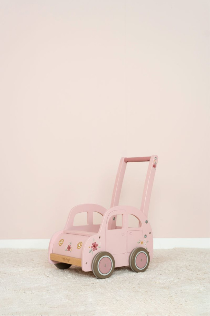 Stílusos utazás, tele szórakozással! Ez a tolóruddal felszerelt pink autó, finom virágos részletekkel és egy kis vintage bájjal tökéletes a kis kalandorok számára.