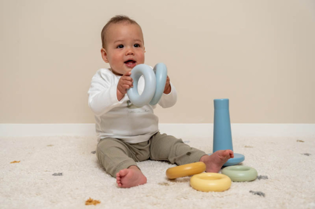 A jól ismert montessori tornyot káprázatos színekben és BPA mentes polipropilén műanyagból is elkészítette a Little Dutch, így könnyebb a fogása a kisebb babák számára is, ha még a teljes torony építése nem megy, akkor is elkezdhet ismerkedni a színekkel és formákkal a gyűrűk által.