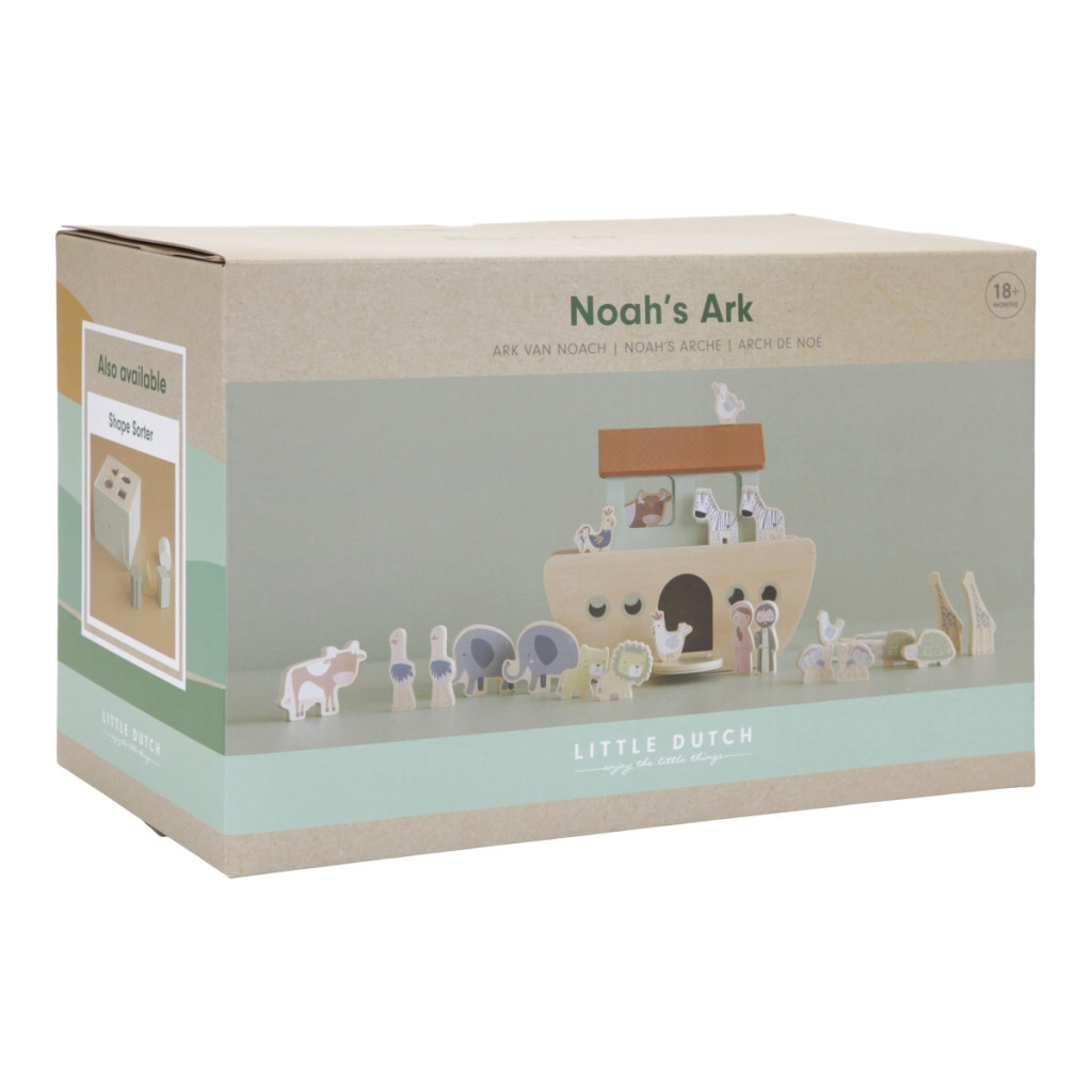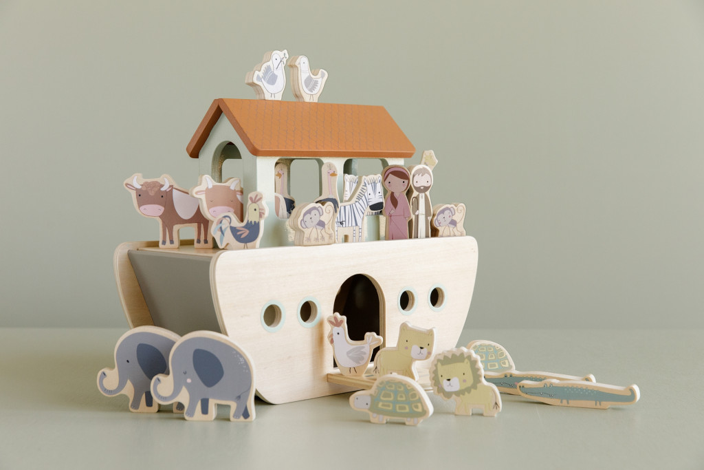 Játszd el Noé bárkájának történetét ezzel a gyönyörű játékkészlettel. Segíts az állatoknak megtalálni egymás párját, és felkészülni az útjukra.