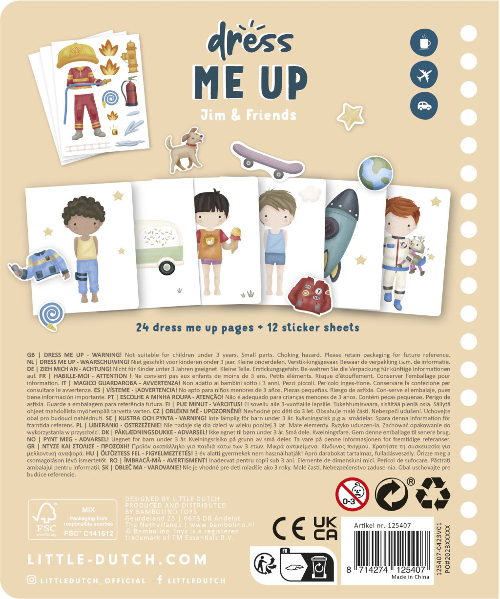 12 oldalon találhatók meg a legmenőbb egyenruhák és kiegészítők matricái. A gyönyörűen részletezett rajzok Little Dutch stílusban órákon át szórakoztatják a gyerkőcöket.