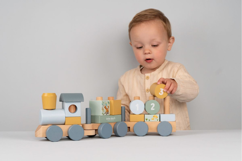 Indulj el egy varázslatos utazásra a Little Dutch építőkockás vonattal! Építsd meg a vonat három vagonját a különböző színes blokkok segítségével, amelyeken a barátságos erdei állatok és természetes kincsek láthatók. Ez a gyönyörű fából készült vonat játékos formában fejleszti a gyermekek kéz-szem koordinációját. A szett 17 darabból áll és a vonat hossza körülbelül 45 cm. Tökéletes választás kreatív játékhoz és képzeletbeli utazásokhoz!Ez a játék ideális választás azoknak a gyerekeknek, akik szeretnek építeni és történeteket alkotni játék közben.