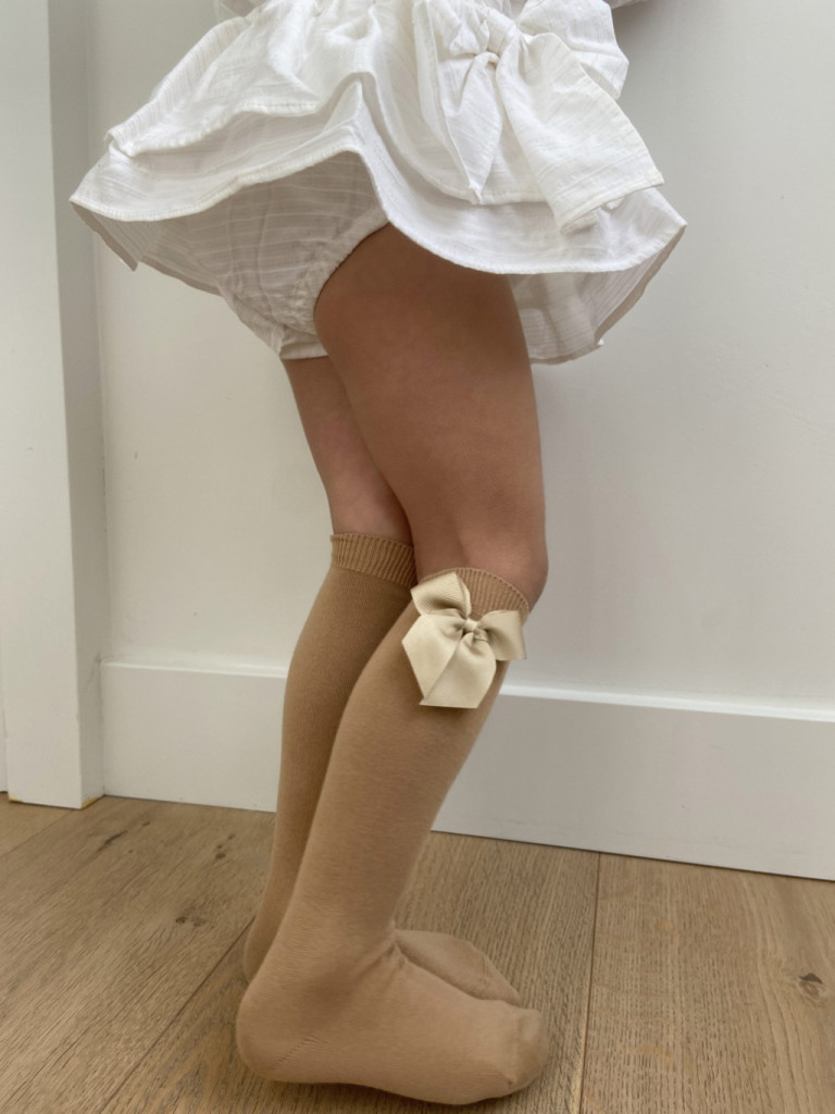 Magasszárú zokni masnival - homokszín - 1-2 év