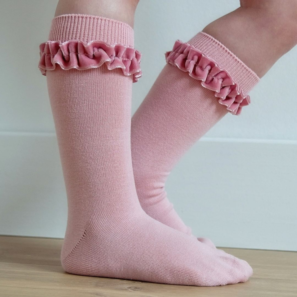 Vélemények Magasszárú zokni fodros bársonnyal - halvány rózsaszín - 4-6 év