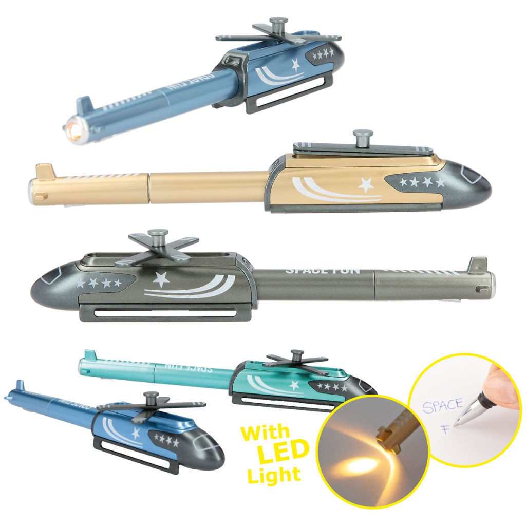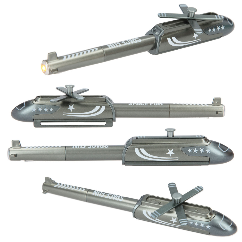 A propeller és a talpak kihajthatók és visszahajthatók, így játékos elemeket is kínál a praktikus toll mellett. A toll farokrészén LED világítás található, amely cserélhető elemekkel működik (az elemek cseréjéhez el kell távolítani a kapcsolót és a LED-eket a gyűrűvel).