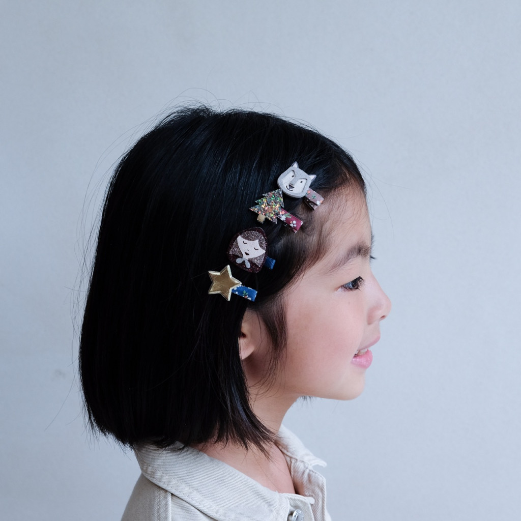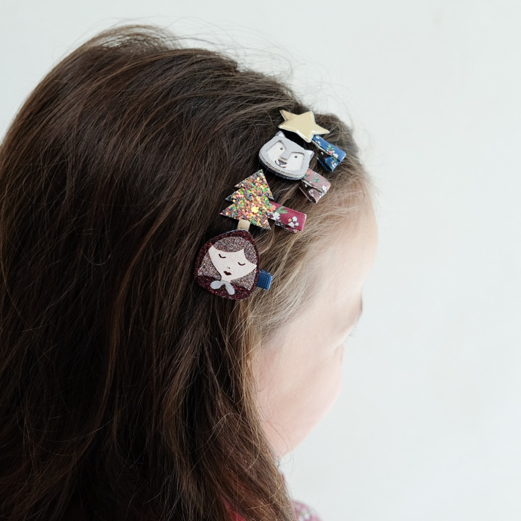 Mini csatok egyenesen a meséből! Hozd el az erdő varázsát ezzel a Piroska és a farkas inspirálta hajcsat szettel. Tökéletes választás a mesés hangulat és egy kis extra csillogás hozzáadására akár meséléshez, akár egy erdei sétához!Jellemzők: