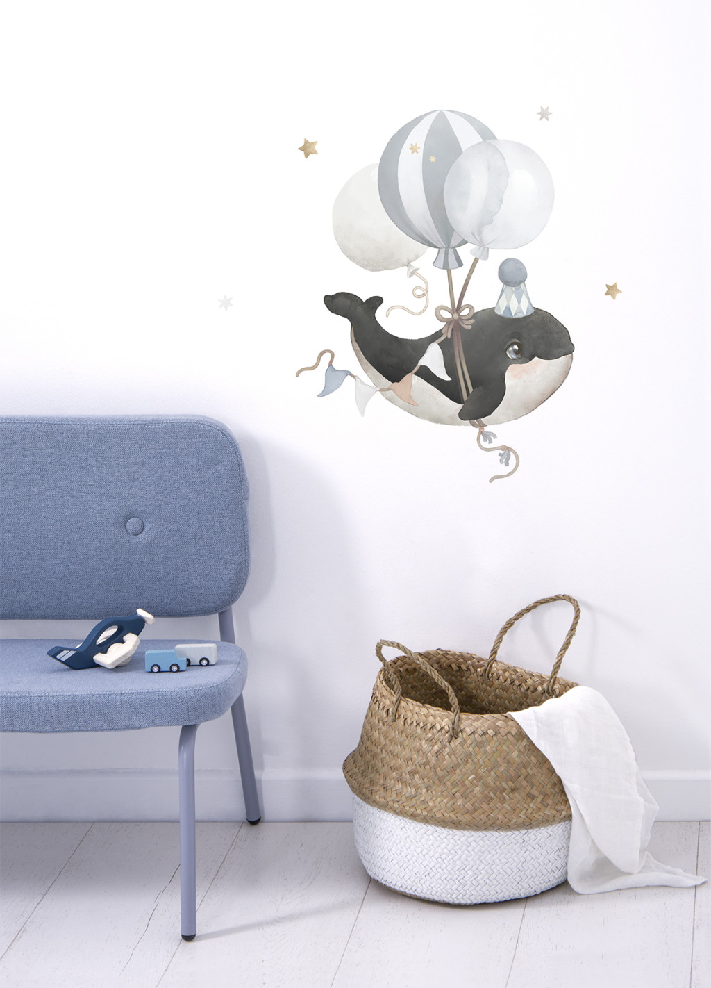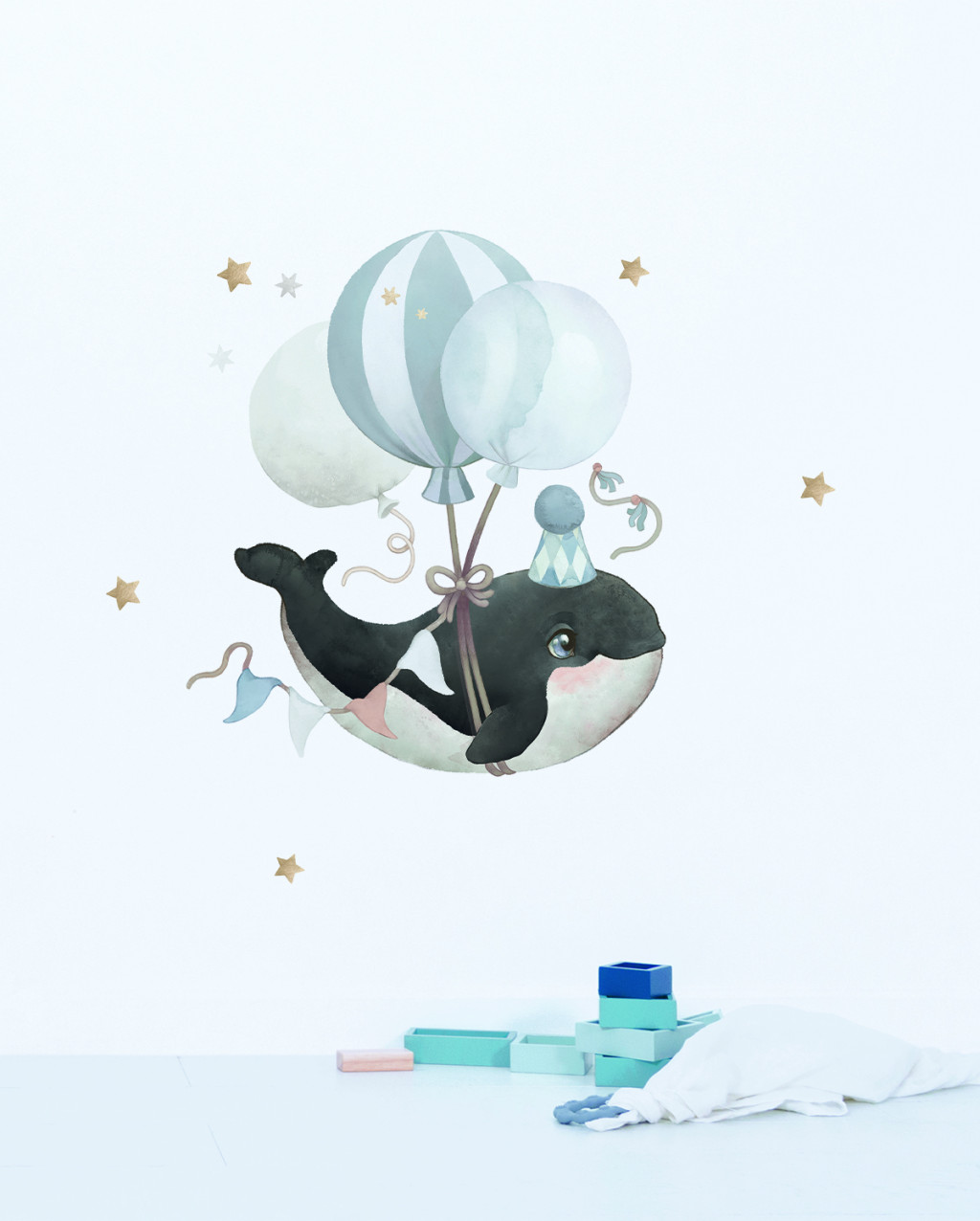 Tedd harmonikussá a gyerekbirodalmat ezekkel a prémium minőségű nagyméretű bálnás falmatricával a francia Lilipinso márkától!Ez az 57 x 65 cm-es matrica egy repülő bálnát ábrázol, amely kék léggömbökkel szárnyal. Tökéletes választás egyedi és varázslatos dekorációhoz a gyerekszobában.Ezek a matricák kiváló választást jelentenek, ha ötletes és inspiráló dekorációt keresel gyermeked szobájához. A falmatricák nemcsak egyedi megjelenést kölcsönöznek a helyiségnek, hanem barátságos, vidám hangulatot is teremtenek. Minden falmatrica színben és méretben összehangolt, így könnyedén kialakíthatod saját, személyre szabott stílusodat.Mérete: 57 cm x 65 cm.Anyaga: VinylMiért ajánljuk? A falmatricák egyszerű használata pillanatok alatt teremt örömöt és hangulatot a szobába. Néhány mozdulattal te is ízlésesen feldobhatod az egyszínű falakat. Az arany csillagok szórakoztató, mégis elegáns díszítőelemek, amelyek bármilyen színvilágba könnyedén beilleszthetők.Tökéletes választás, ha szeretnéd egyedi módon dekorálni gyermeked szobáját, vagy ha egy szép, kreatív ajándékot keresel!