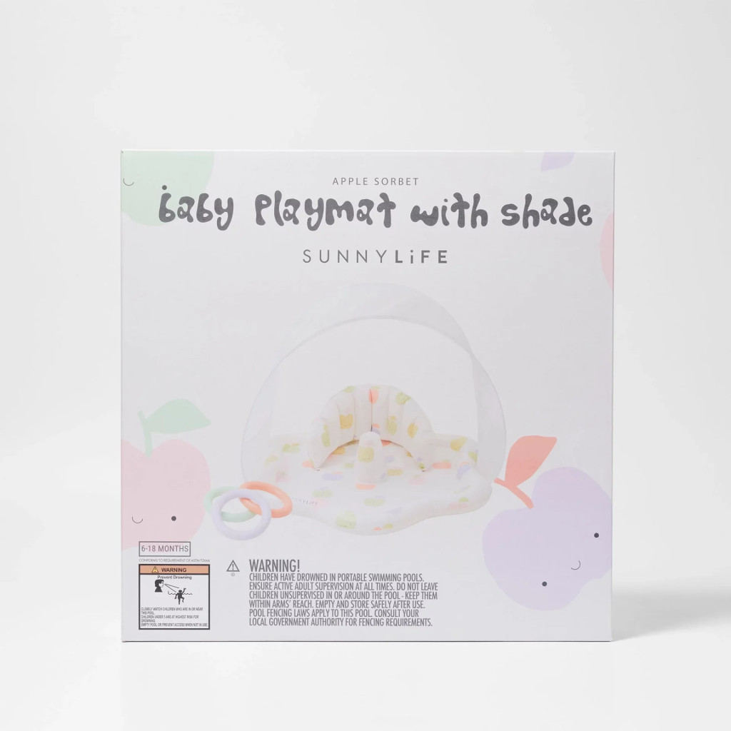 Kiváló szórakozás a Sunnylife-tól a gyerekeknek a strandon, vagy éppen a kertben, védve a naptól. Az Apple Sorbet Baby játszószőnyeg árnyékolóval a család legkisebb tagjai számára készült, felfújható háttámlával és kivehető UV 40-es napernyővel. Kiváló a gyerekek szem-kéz koordinációjának fejlesztésére a 3 egymásra rakható játszógyűrűvel. Tapasztalja meg a nyár legjavát az imádnivaló apple sorbet dizájnnal és édes pasztell árnyalataival.